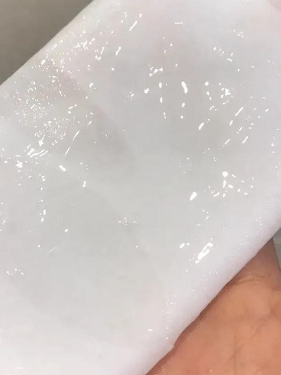 它这个包装袋设计是U型的看起来很特别,感觉整片膜布都浸泡在精华里了,敷15分钟后面膜纸上居然也还有很多微乳精华,并且精华液质地很清爽没有粘腻的感觉,作为夜间补水面膜也妥妥的!