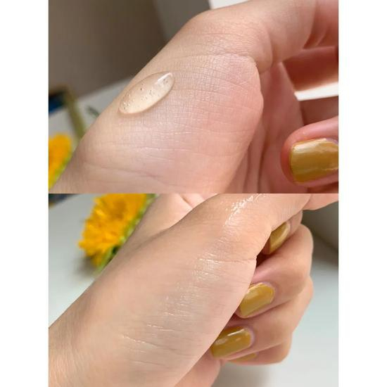 虽然我乍一看粘粘乎乎的,但是在指腹间稍微揉搓一会儿,就能变成透明水状质地,这时候再上眼就能吸收得飞快。