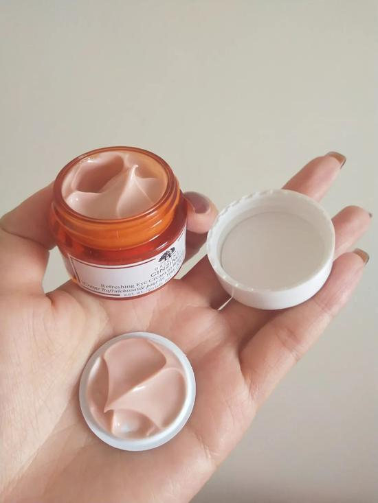 这款不光是效果好,用起来也很舒服,上手按摩的时候能感觉到微微发热,很能放松眼周肌肤。而且它里面是含有云母颗粒的,相比法尔曼那款的存在感更强一点点,刚上眼的时候甚至有种自带眼妆的效果。