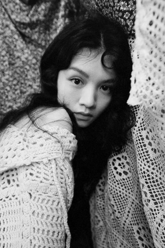 但她的故事感来自她的眼睛,澄澈的眼神间满满都是少女的灵动感,带有一丝狡黠和倔强,圆圆的内眼角和下垂的眼尾又给她的眼睛添了几分无辜感。