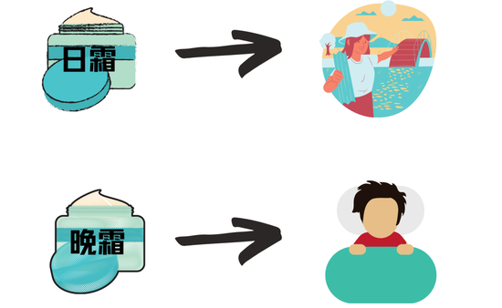 就拿面霜举例,日霜晚霜虽都属于面霜,但它们擦上之后一个是去睡觉,一个是走出门,为了满足不同环境下肌肤的需求,在功效上是有所区分的。