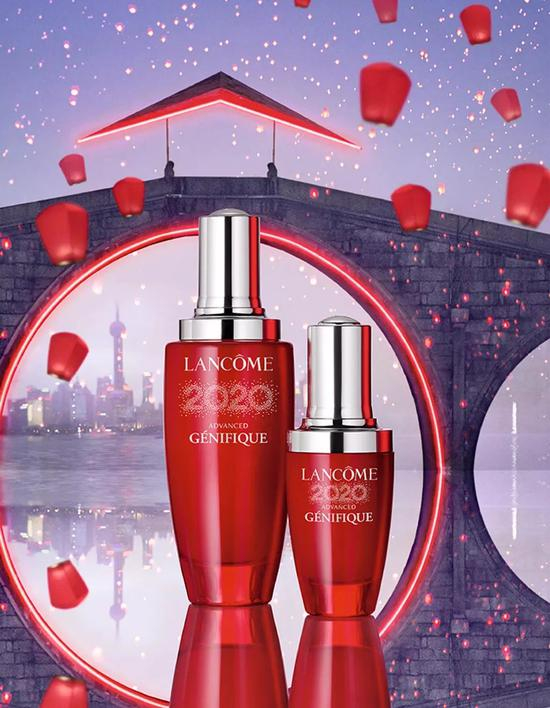 大家应该也知道,兰蔻家比较经典的就是玫瑰萃取成分,就连logo也是由玫瑰图案构成。今年兰蔻的新年限定小黑瓶直接就把玫瑰印到瓶身上,走“国风玫瑰”路线。