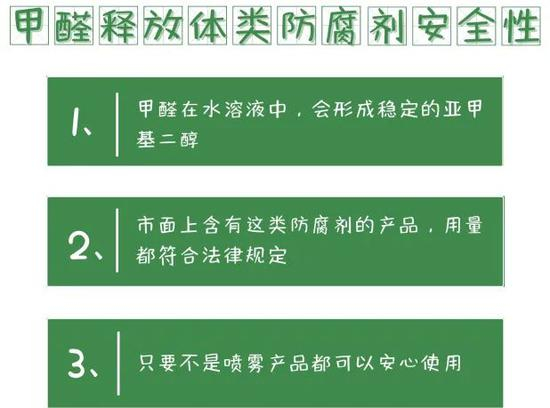 其实小可爱们多虑了,甲醛释放体防腐剂主要是通过在护肤品中缓慢释放少量的游离甲醛起到杀灭微生物的作用,而不是在短时间内快速释放甲醛。并且这些刚被释放出的甲醛,由于被水溶液包裹,其中的氢键很快便能与水分子结合,形成稳定的亚甲基二醇,除非加热才会分解出甲醛,否则很难挥发出来,所以这类甲醛释放体系是很安全的。