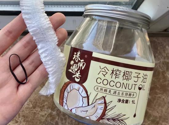 使用方法也很简单,取适量椰子油涂抹发尾,注意哦!不要碰到头皮,然后用发帽包起来。