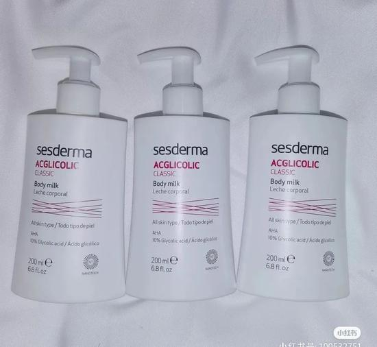 作为一个轻微鸡皮的女生,已经用空三瓶了~sesderma果酸身体乳含有10%黄金浓度果酸,所以对于改善鸡皮和身体小疙瘩是非常拿手的~