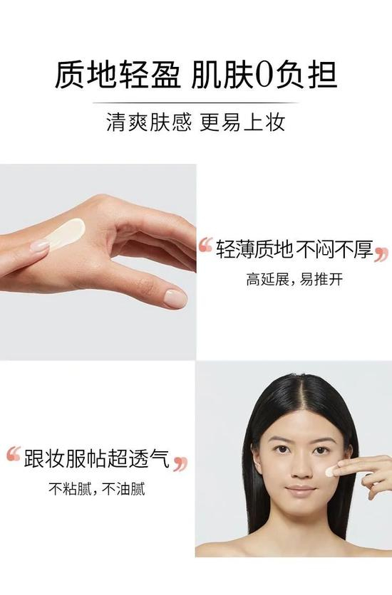 有轻微润色效果,但是不会显得假白,在防晒的同时还能均匀亮白肤色,看上去气色更好。