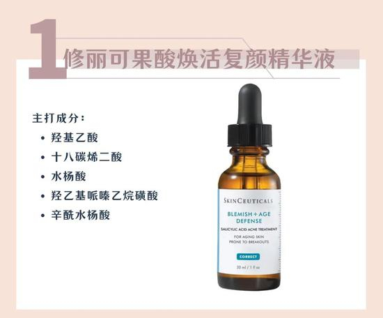 在猛药辈出的修丽可家,这瓶“五酸”精华也绝对称得上是佼佼者。光听它的名字就能感觉它不得了,简简单单的12种成分中,就包含了羟基乙酸、十八碳烯二酸、水杨酸、柠檬酸和辛酰水杨酸五种酸,就问问还有谁敢这样加!