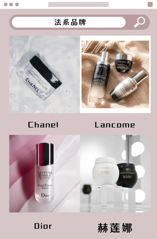 法国的护肤品自然也耳濡目染了它们的高贵气息,奢侈品大牌辈出,你品品香奈儿、娇韵诗、YSL、纪梵希、兰蔻、迪奥。。。那些包装奢侈又高级,看起来就很贵的,名字自带罗曼蒂克味儿的,调香和肤感一流的,多半是法系品牌了,它们在小编心里的形象就是实打实的贵妇!