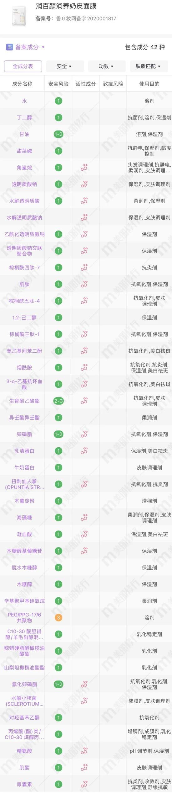 首当其冲的角鲨烷和多种透明质酸保证了这款面膜的补水保湿能力不会差,但这只是它的基础使命,它的最终目的可不仅限于此!接下来不仅有四种胜肽把抗氧化和抗老修护做到位,还有377、烟酰胺和乙基VC三个美白大佬形成一个完美的提亮闭环。这个华丽的成分表属实配得上这个名字,多方面地滋润养护了我们的脸子。