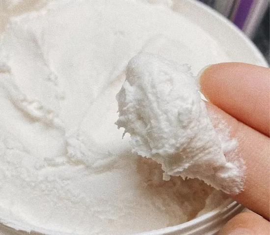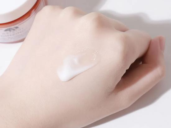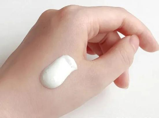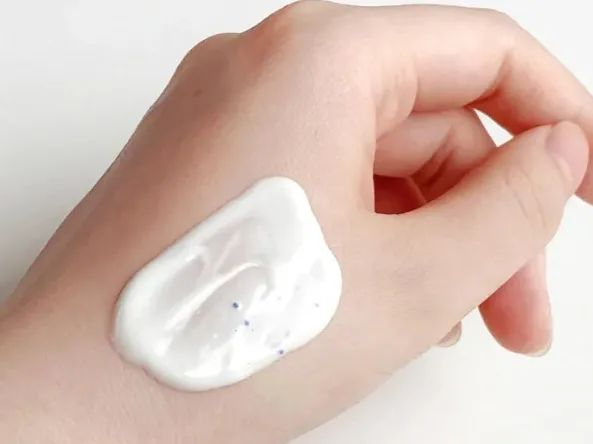 质地就像酸奶,里面有蓝色小颗粒,小颗粒里是VA+VE的浓缩,有促进胶原蛋白生成、紧实肌肤的大用处。