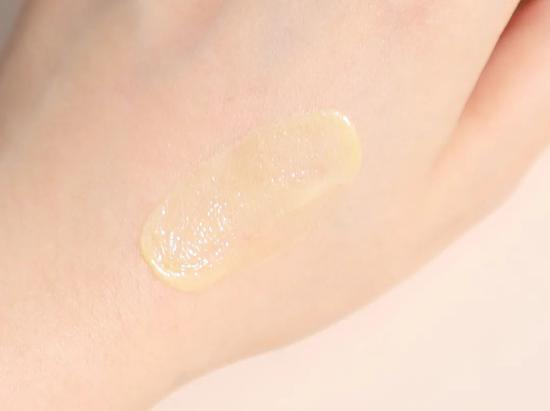 质地是橘黄色的轻薄乳液,几乎没啥流动性,延展性很好,一次一两泵基本上就够涂全脸了。