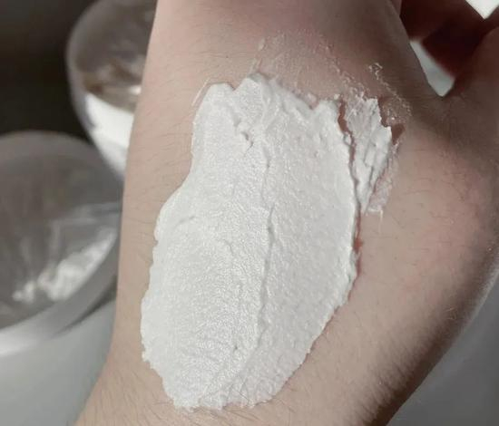 质地是半固体的灰白色泥状,有一点点厚度,不会那么稀,上脸推开很好,泥也比较细腻,家里没有面膜刷的,直接用手也能抹匀,很方便。