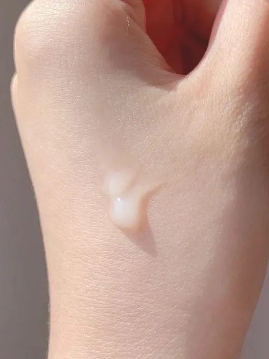 质地类似精华乳,挤出来奶白色的就像炼乳一样,有一定的流动性,涂抹开的时候非常水润,而且不油腻,不用担心会糊脸子。