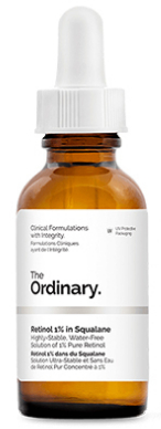就像我们熟悉的淡纹成分的香饽饽-视黄醇,the ordinary 1%视黄醇角鲨烷精华,含有的成分就是高浓度视黄醇+溶剂+让产品更稳定的成分。