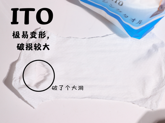 美则和ITO的表现就比较弱了,非常容易变形不说,最后直接被拉破,ITO更是破了个大洞,看来只能用完就扔掉惹。各位富婆们记得一定要温柔点对它们吼(小声叨叨)~