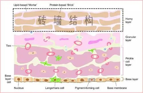 皮肤屏障位于我们皮肤的表面,它有一个特殊的“砖墙结构”,是由角质细胞及其细胞外成分彼此紧密嵌合形成的。有了这个砖墙结构,我们的皮肤就可以抵抗外界刺激的侵入,又能防止水分丢失。
