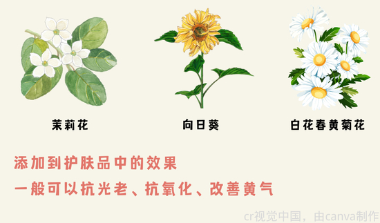 有一说一,这些花明明可以靠颜值引来爱慕者,偏偏还要靠着抗氧化、匀净肤色的效果来获取小可爱们的芳心,不少护肤品中都能看到它们的身影。