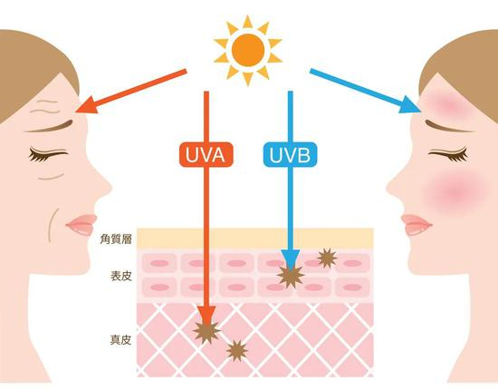 UVA(长波紫外线)俗称“晒黑段”,穿透力很强,阴雨天气也可以穿过云层到达地面,即使咱们拿遮阳伞、帽子等物理防晒全副武装都不能完全挡住它,它可以轻易地将我们的肌肤晒黑,甚至会破坏皮肤中的胶原蛋白让肌肤失去弹性。