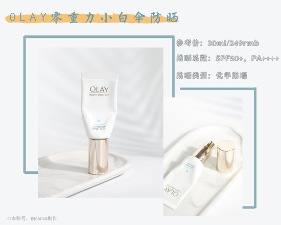 小白伞添加了OLAY的当家花旦高纯度烟酰胺来帮助提升肌肤的修护力。海藻糖和白茶精粹不仅可以增强肌肤的水润度和抗氧化,还可以舒缓晒后肌肤的不适~拥有的空气触融科技加快了成膜速度。加上低油脂,不添加酒精成分,上脸温和轻盈,也不怎么闷痘。