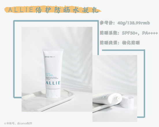 ALLIE倍护防晒水凝乳与粉金瓶类似都是物化结合的防晒,其中的甲氧基肉桂酸乙基己酯是常见的油溶性防晒剂,对皮肤刺激较低,很容易就被肌肤吸收了~