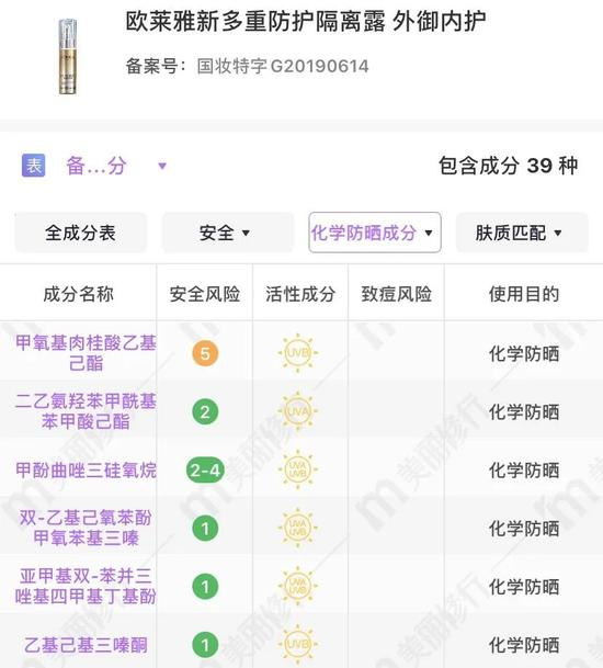 这支小金管防晒拥有欧莱雅专研的麦色滤防晒科技,可以阻隔大量的紫外线,从成分表中不难看出其中添加的都是化学防晒剂,实打实属于纯化学防晒,这也是它肤感舒适的原因之一。