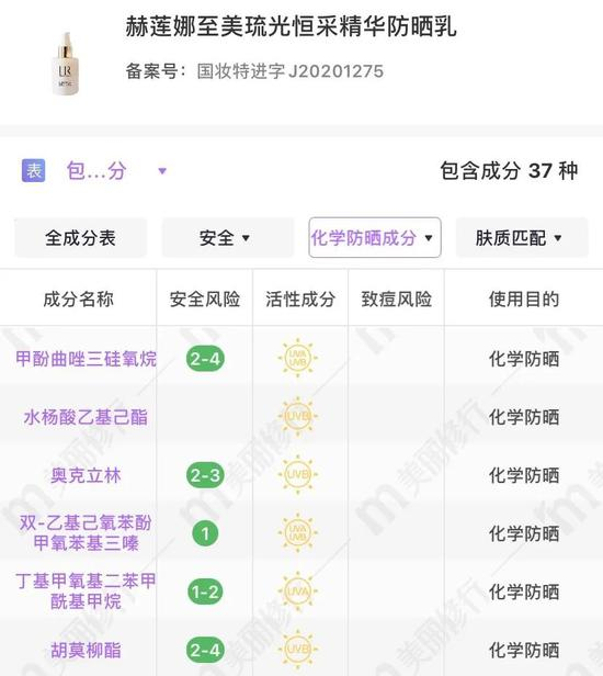 贵妇防晒当属赫莲娜~六类化学防晒剂相互作用,尤其是奥克立林可以大量吸收照射在皮肤表面的紫外线,改善脸部肌肤发红、光老化的问题。防晒能力也很能打,属于全波段高倍防晒。