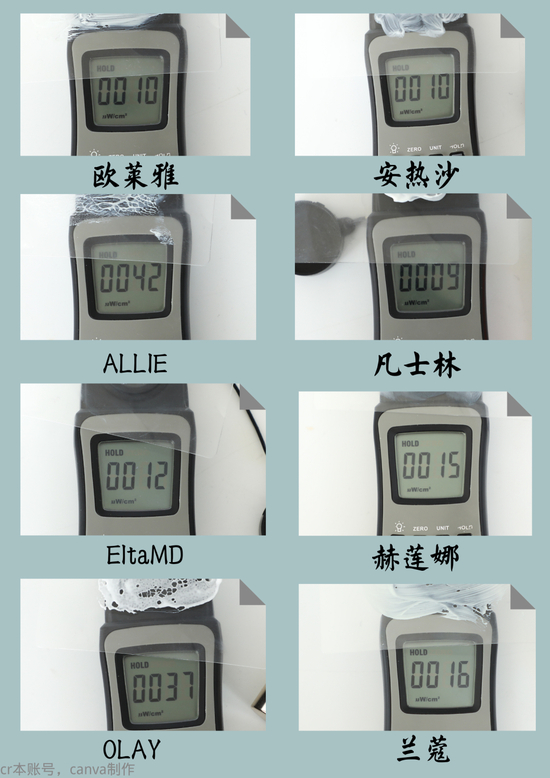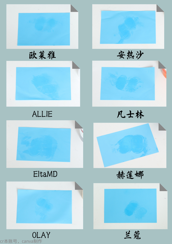 从测试结果来看,安热沙和兰蔻的表现很优异,小纸片竟对它俩构不成任何威胁。欧莱雅、凡士林、赫莲娜和OLAY也不甘示弱,只有一两片没有逃过控制。再看看ALLIE和EltaMD这俩,稍微有点不争气了哈~