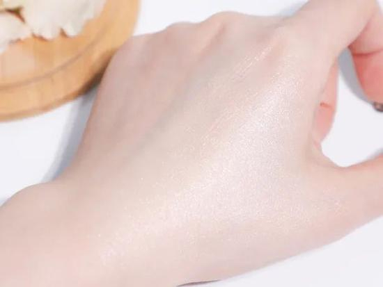 比较特别的一点,是加入了珠光成分,所以用完后会有提亮润色的效果,感觉相当于一支妆前乳,有点伪素颜的心机感。