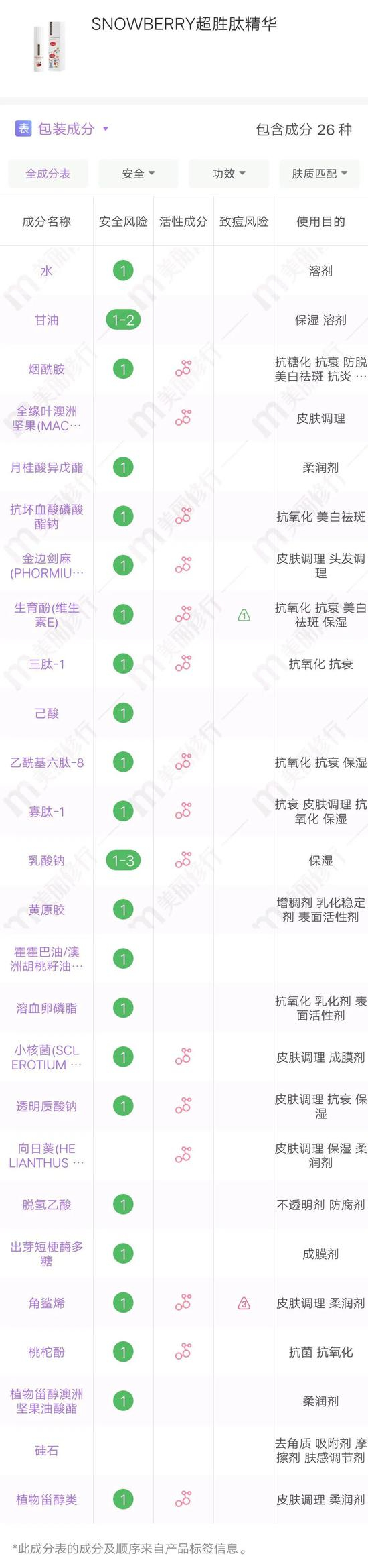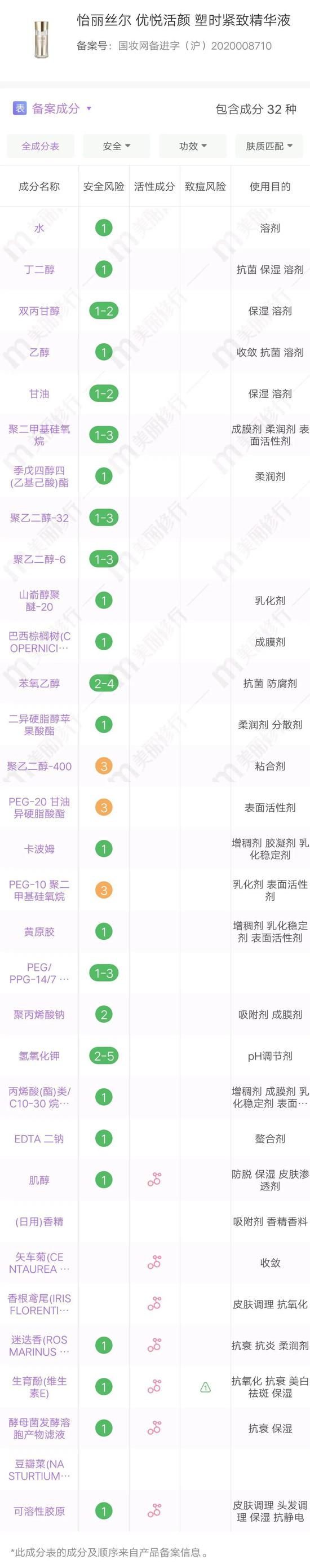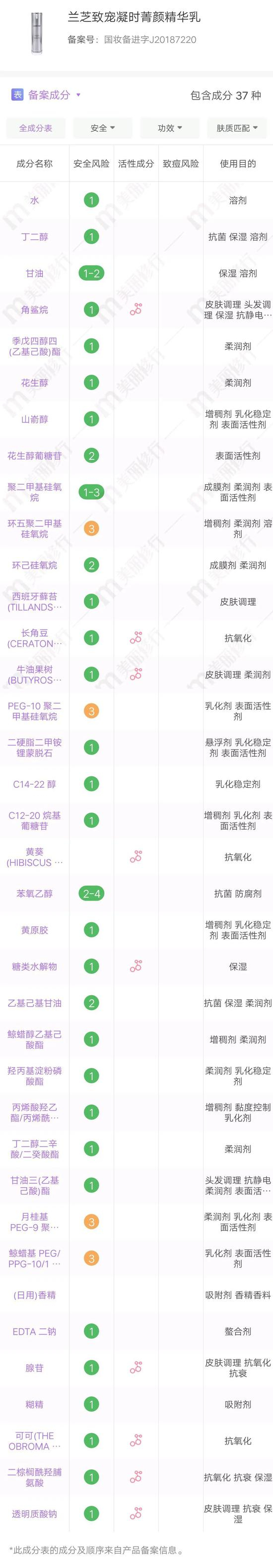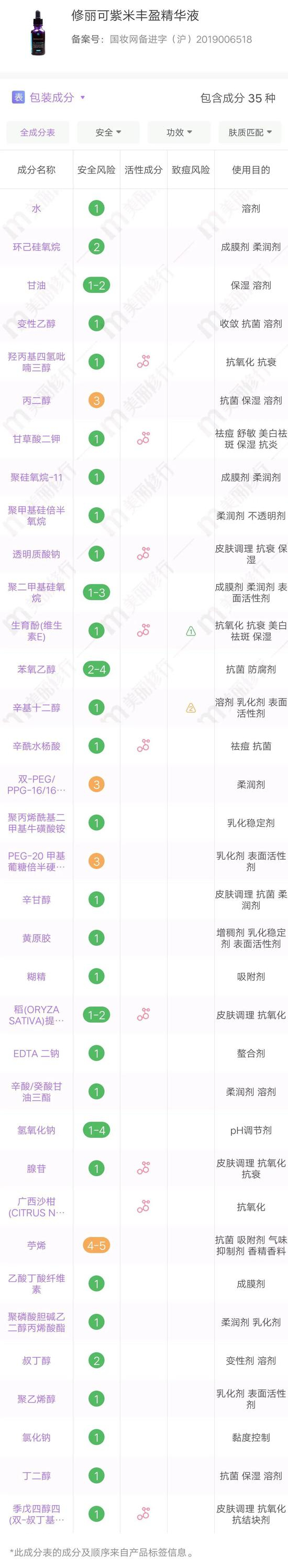 它里面添加了香根鸢尾根提取物和矢车菊花提取物这对充盈西皮共同呵护肌肤,不仅能增加皮肤中胶原蛋白的密度,同时还能修护基底膜,使肌肤嘭弹起来,变得自然紧实有弹性~8过,俺看里面还有会刺激皮肤的香精、苯氧乙醇,敏感肌的姐妹还是要慎用~