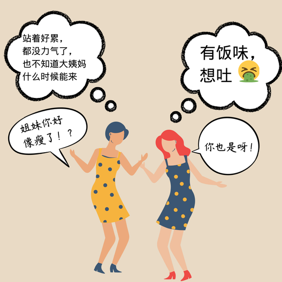 再来说说心理上的,过度节食很容易引起“进食障碍”,造成神经性厌食和神经性贪食的情况发生。前者是因为有负罪感啥都不想吃,后者则是抑制不住自己想进食的欲望,但吃完后又会因为心理负担而出现诱吐等情况。