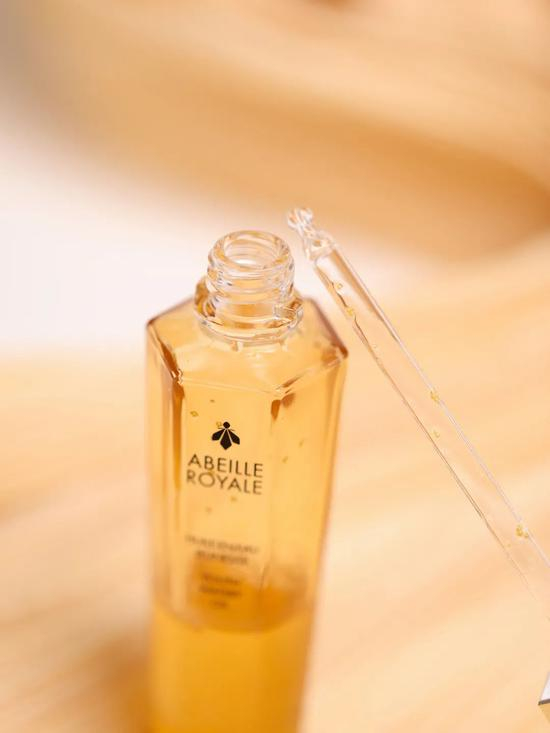 首先外观真的是“富贵感”十足了,金灿灿的瓶身,里面的精华是含有金色小微珠的,有助于缓和受损肌肤。