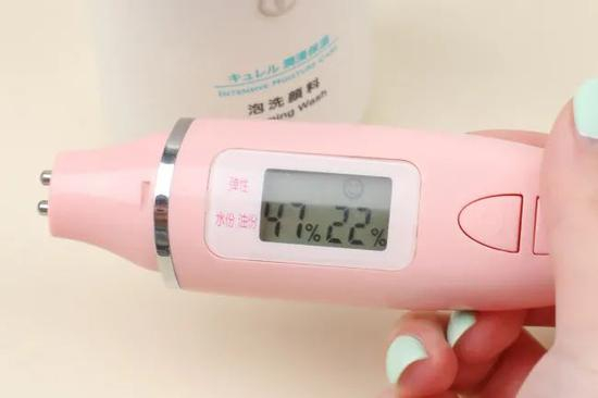纸上谈兵都是假,我们还是直接洗一把来看看!在用完洗面奶之后,哩哩子又用水分测试仪测了一下水油值,来看看洗完之后我的使用感是如何,皮肤会不会有紧绷或者拔干的现象。