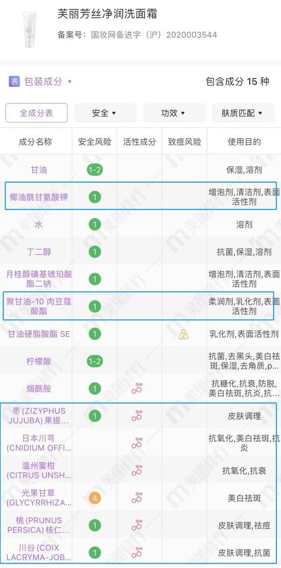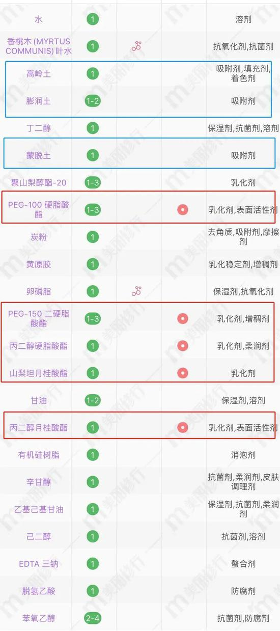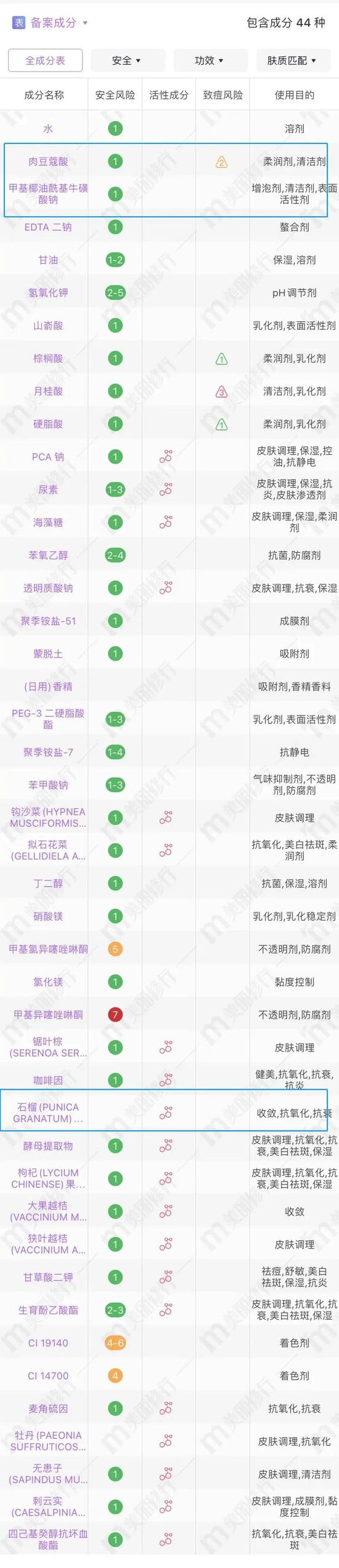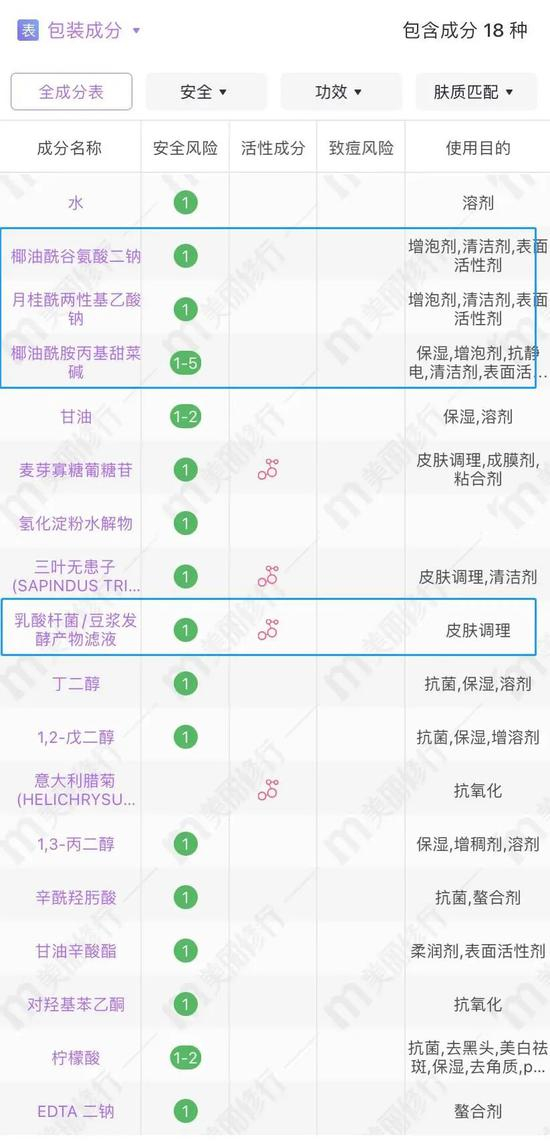 为了舒缓皂基带来的一些刺激,它还添加不少保湿抗氧化成分,如石榴提取物、拟石花菜提取物等等,不过敏感肌的话还是建议选择楼上那几款哈~