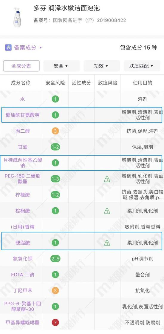 多芬的这款洁面也是典型的复配两性表活洁面乳,它的成分里面含有月桂酰,配合常见的增泡剂,达到清洁肌肤的效果。是一款纯氨基酸洗面奶。