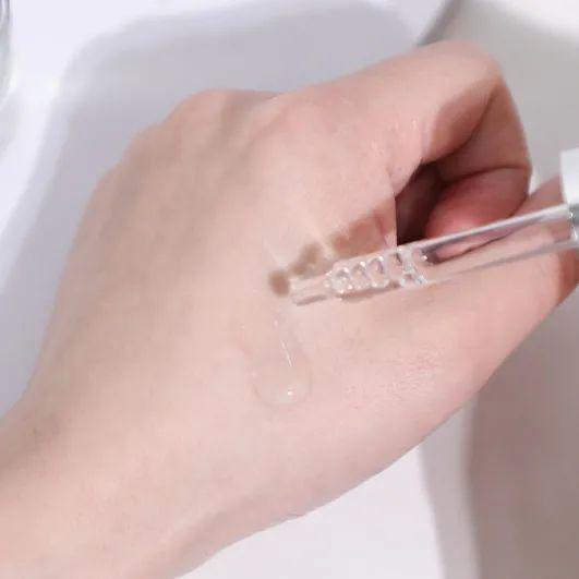 隔着瓶子就能看到里面的液体像水一样,流动性巨好,而且上手很容易推开,随便涂抹一下就被肌肤吸收了,清清爽爽夏天必备!