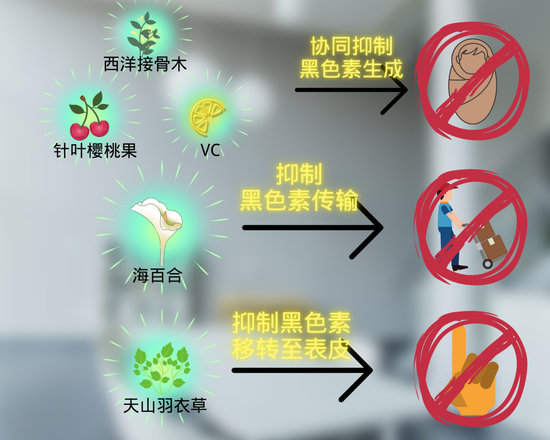 针叶樱桃果&西洋接骨木、桃金娘精萃、维C、海水仙、天山羽衣草五大植物配方,连续追击黑色素的5大转运节点,让黑色素“插翅难飞”,一举拿下五杀直接团灭!