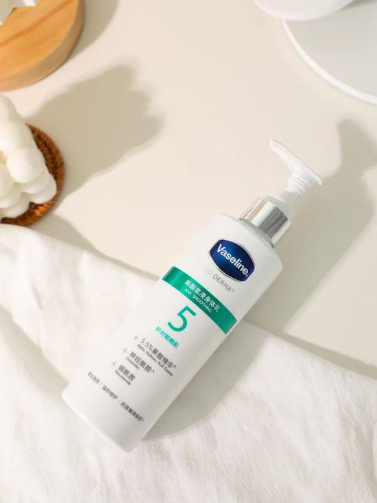 凡士林5号则是5.5%果酸精华+神经酰胺+高纯度烟酰胺的组合,可以在肌肤耐受的情况下温和刷酸,帮助嫩滑肌肤,有改善粗糙肌肤、缓和鸡皮肤需求的姐妹可以找它。