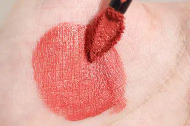 哑光质地,略带微微金细闪,虽然不是滋润款,但涂在大拇指内侧也并不显纹路。薄涂棕调明显很多,厚涂奶油感更重,有点偏枫叶的橘调。但整体饱和度不高,不会显得太过于拗元气人设。