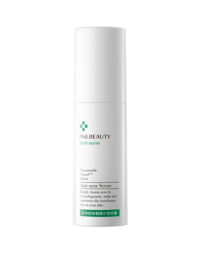 5倍添加桃柁酚x茶树精油,针对红肿脓包痘杀菌消炎,倍速净痘;锯叶棕果等三种植物精萃源头抑制油脂生成酵素活性(5-α还原酶),减少痘痘的滋生。协同白池花籽油与红没药醇、甘草精萃,舒缓修护受损屏障,淡化泛红痘印。