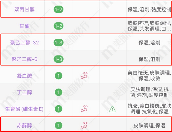 水用到的大都是赤藓醇、聚乙二醇、双丙甘醇这类很温和的保湿剂成分,不刺激皮肤的同时保湿效果很nice~
