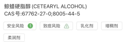 护肤品能够形成奶油质地,多半都有鲸蜡硬脂醇的功劳。它常常作为乳化剂和增稠剂出现,负责提升产品的延展性。水包油型乳剂具有封闭性,但致痘风险属于非常非常小的那种,大家也不用太担心。