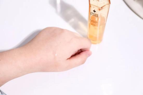 精华左管是透明的啫喱质地,右管是黄色的乳液状。挤压出来在手心混合搓热后轻轻按压上脸使用,上脸后不会因为是蜂胶而油腻,反而更加好吸收,脸子就像吸取了充足的养分,Q弹的就像剥了壳的鸡蛋,这也是我青睐它的重要原因之一~
