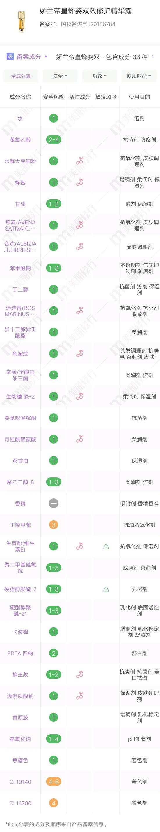 右边的管里是娇兰当家成分——黑蜂蜂王浆!做到紧实修护肌肤,淡化细纹都是有它的帮忙!另外里面的燕麦提取物也让它的抗氧化能力大大提升!8过它里面的“熊孩子”卡波姆会有一定的搓泥风险,对于油皮宝宝来说或许有点负担哦~