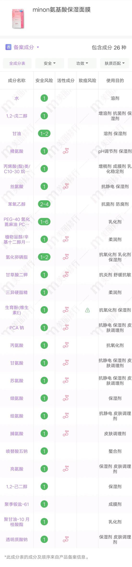 它里面添加了足足9种保湿氨基酸成分,搭配上生育酚,在保湿的同时还能起到抗氧化作用。而且里面还不含色素、香精和酒精,相对比较安全,敏感肌的宝宝们也可以放心用~怪不得卖的这么好,还是有点东西的!