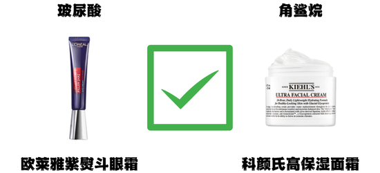 最后这组CP可以说是保湿“王炸”了,玻尿酸、角鲨烷都是保湿届鼎鼎大名的成分,组合在一起,直接就是一波保湿轰炸,这组CP干皮站定了!