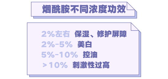 更有甚者,超过某个浓度对皮肤反而弊大于利,比如说烟酰胺,浓度超过10%皮肤就顶不住了!