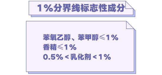 第二种方法,我们可以在成分表中找到一些具有严格限制的成分,划出1%浓度的成分,再根据成分排序来大致推断其它成分的含量。