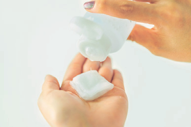 1. 化妆棉对折4次,让化妆水浸润每个角落