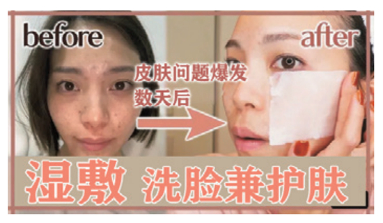 湿敷护理很像是简易版面膜,将化妆水倒在化妆棉上,然后敷在脸上,可以全脸都敷,也可以只敷在局部问题肌肤处。