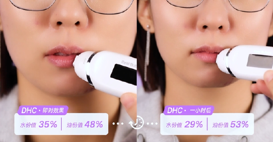 凡士林和DHC的唇膏在使用后一小时含油量大涨,保湿度却嗖嗖下降,妥妥的油腻没商量。